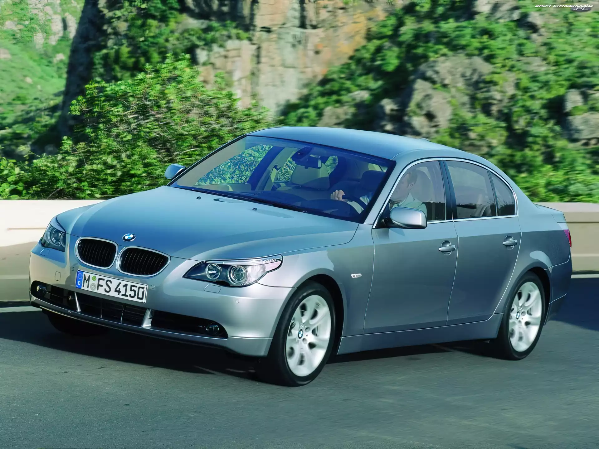 Samochód: Góry, Droga, Silver, BMW 5, E60