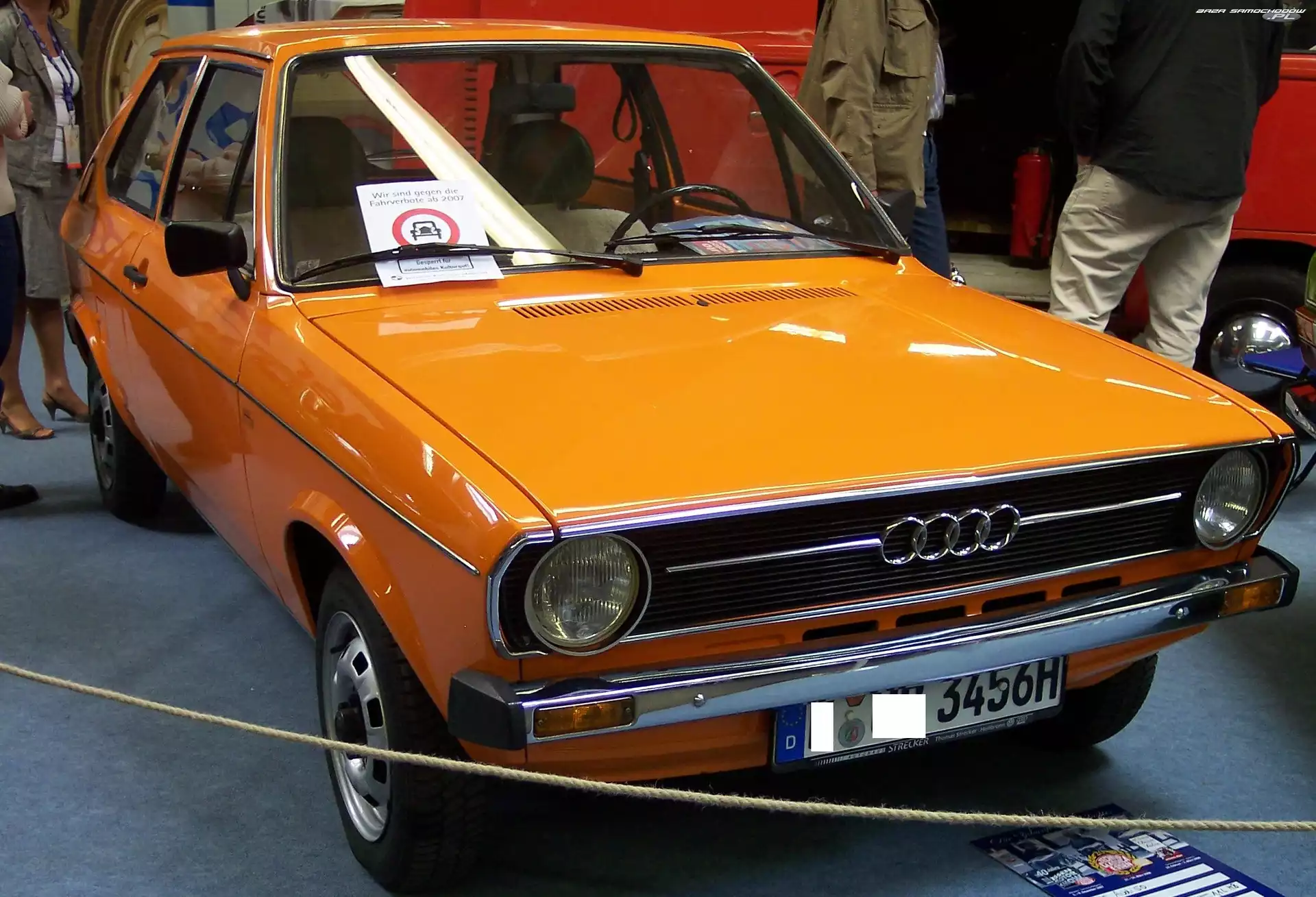 Hatchback, Audi 50 Drzwi, Audi 50 Reklama, Pomarańczowe, Audi 50 Wystawa, Audi 50, Salon Audi 50 Prezentacja, Audi 50, Wystawa Audi 50, Chrom, Przód, Zderzak