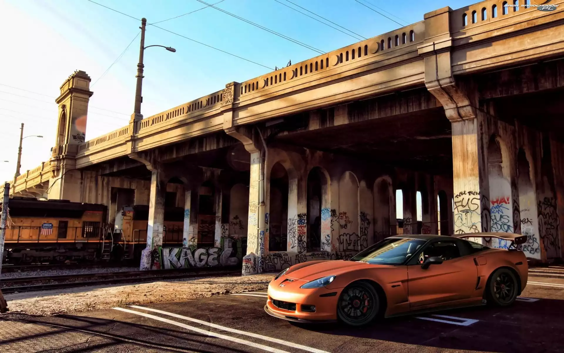 Samochód: wiadukt, corvette Z06 , tuning